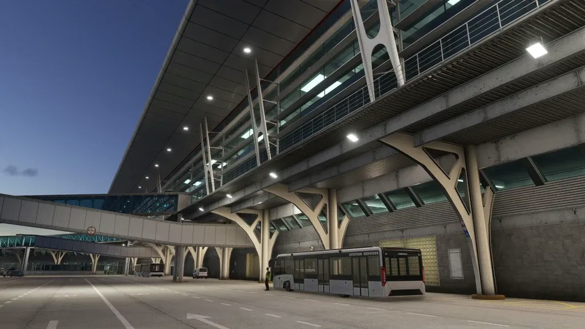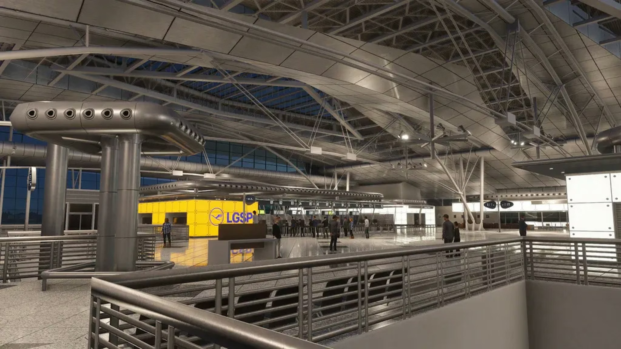 Die Szenerie umfasst viele Details, die den Flughafen lebendig wirken lassen: